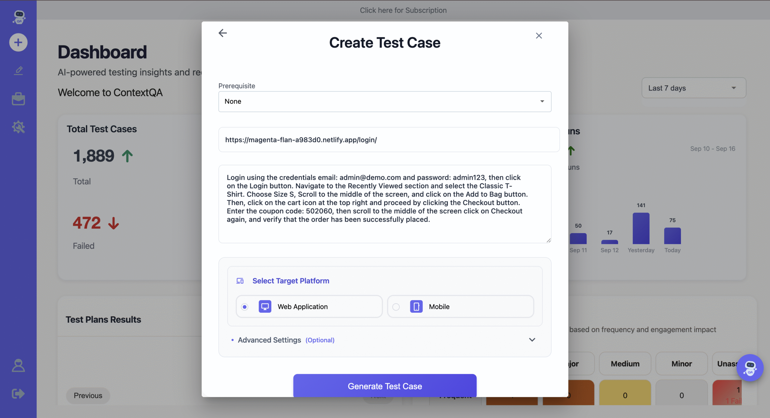 Turn user stories into automated test cases with zero scripting required